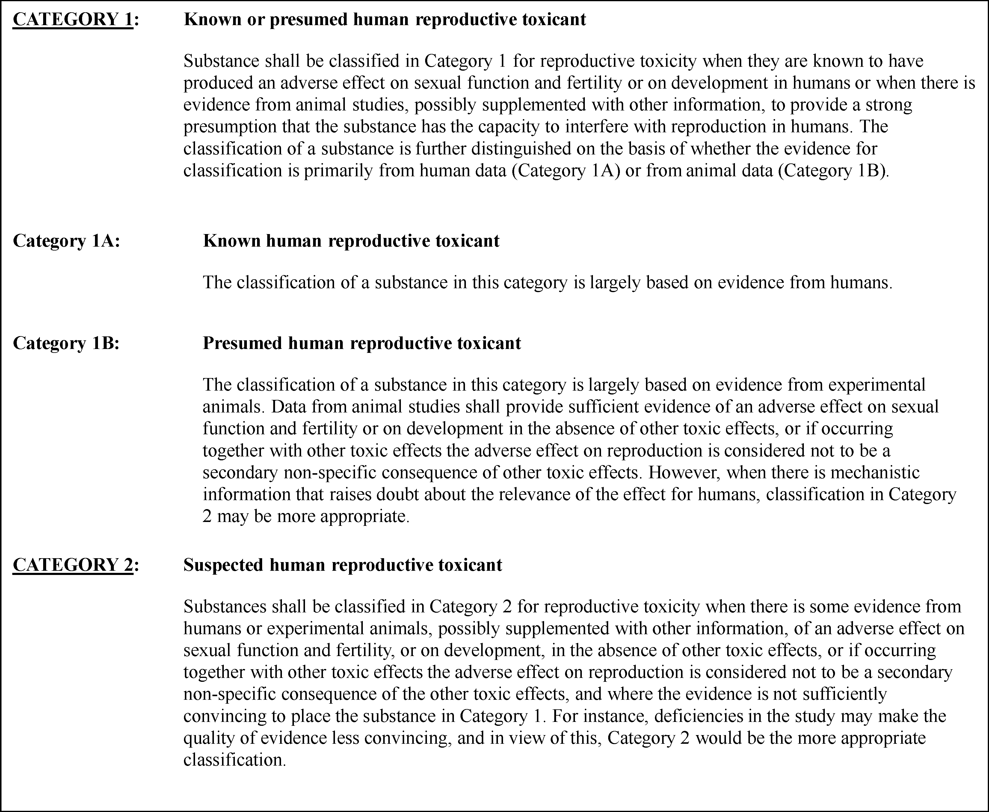When data are sufficient, substances may be classified in one of the three sub-categories 1A, 1B, or 1C.