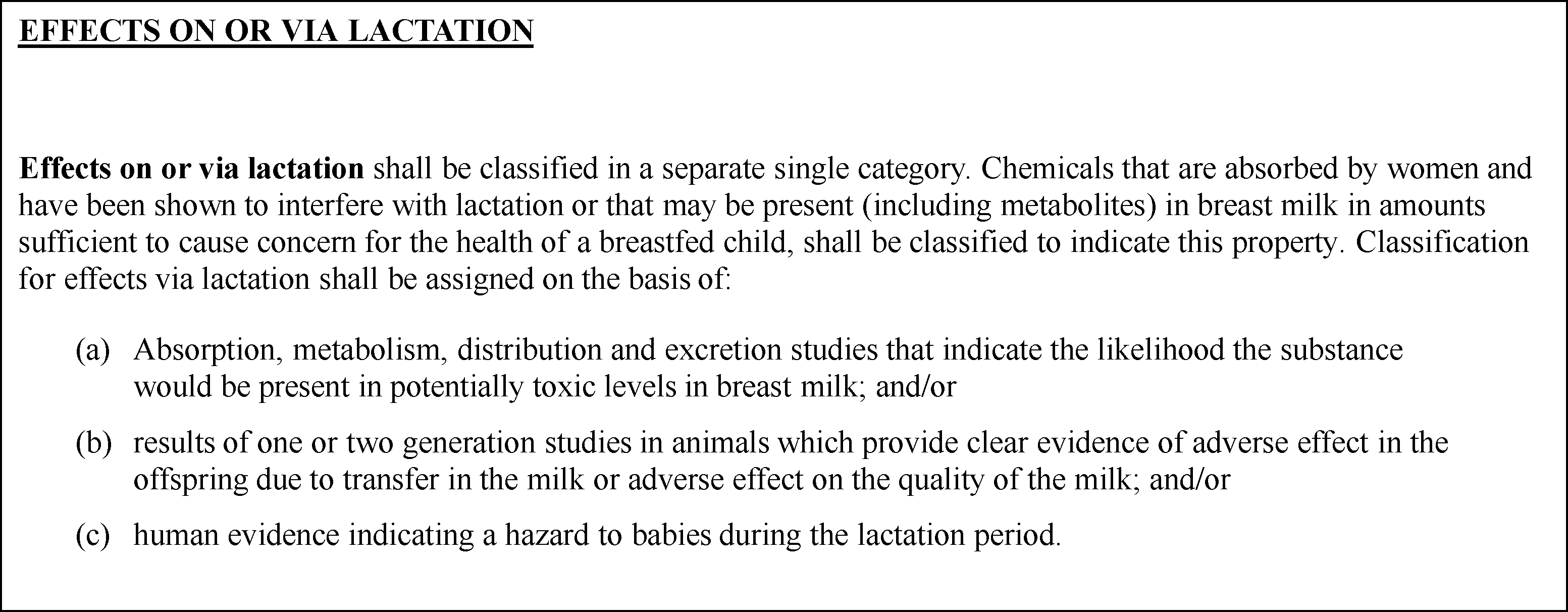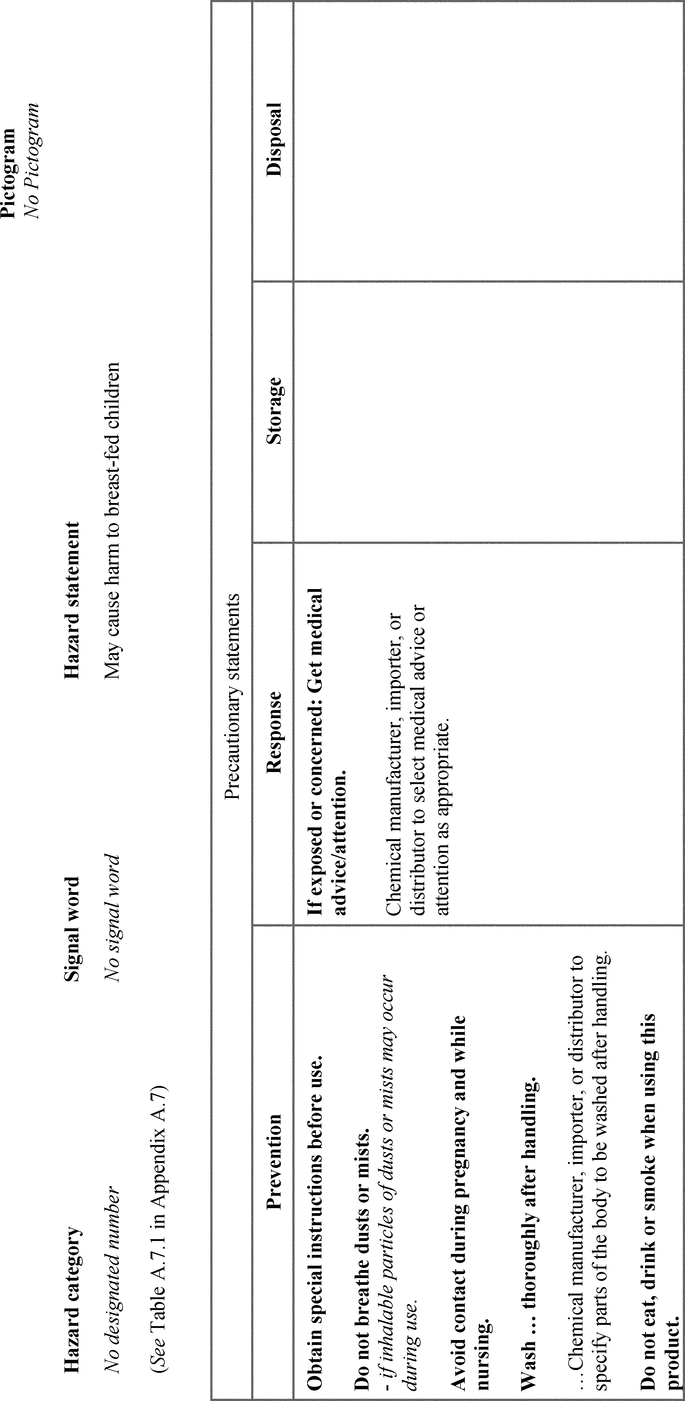 Figure A.7.1(b): Hazard Category for Effects On or Via Lactation