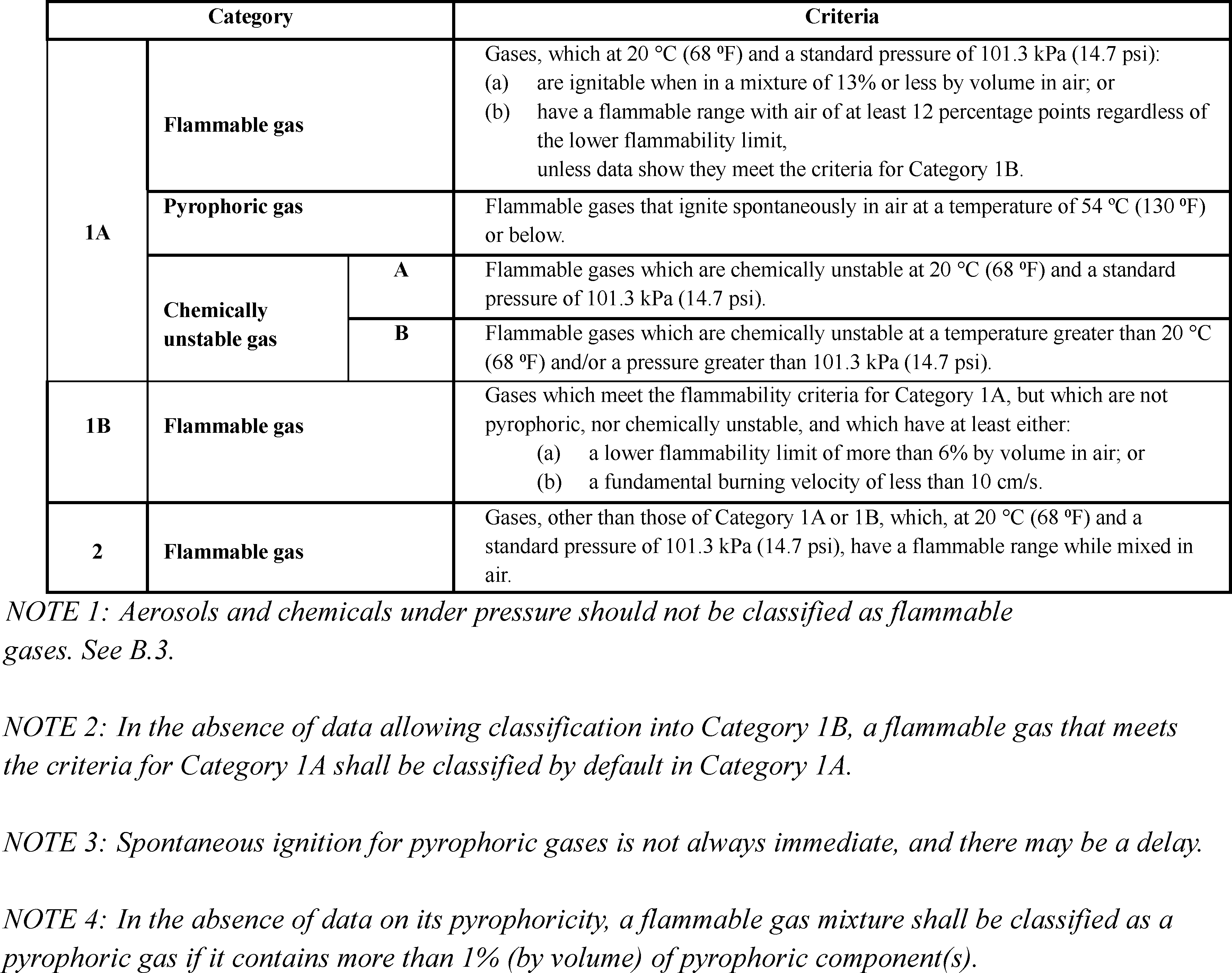 Table B.2.1: Criteria for Flammable Gases