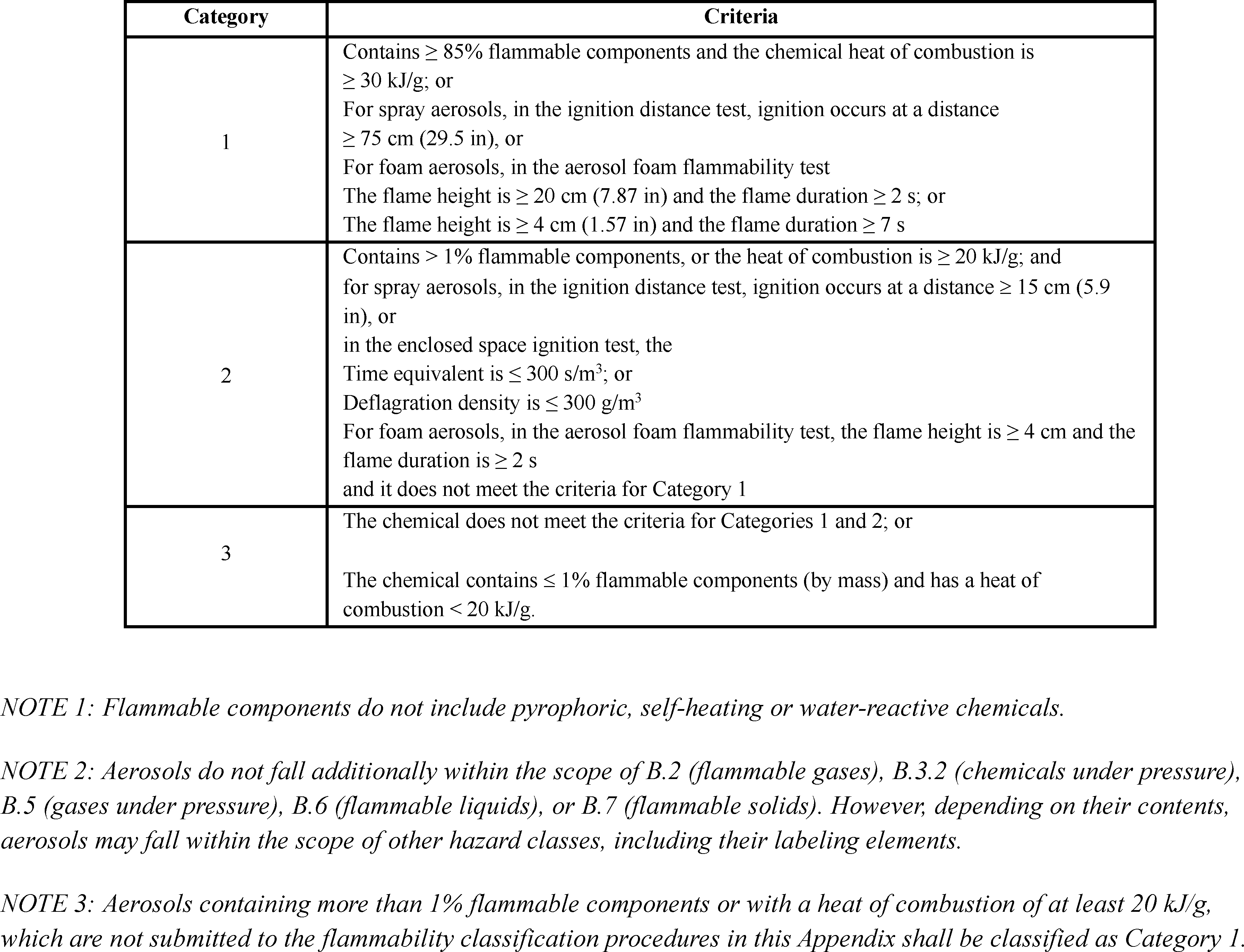 Table B.7.1: Criteria for Flammable Solids