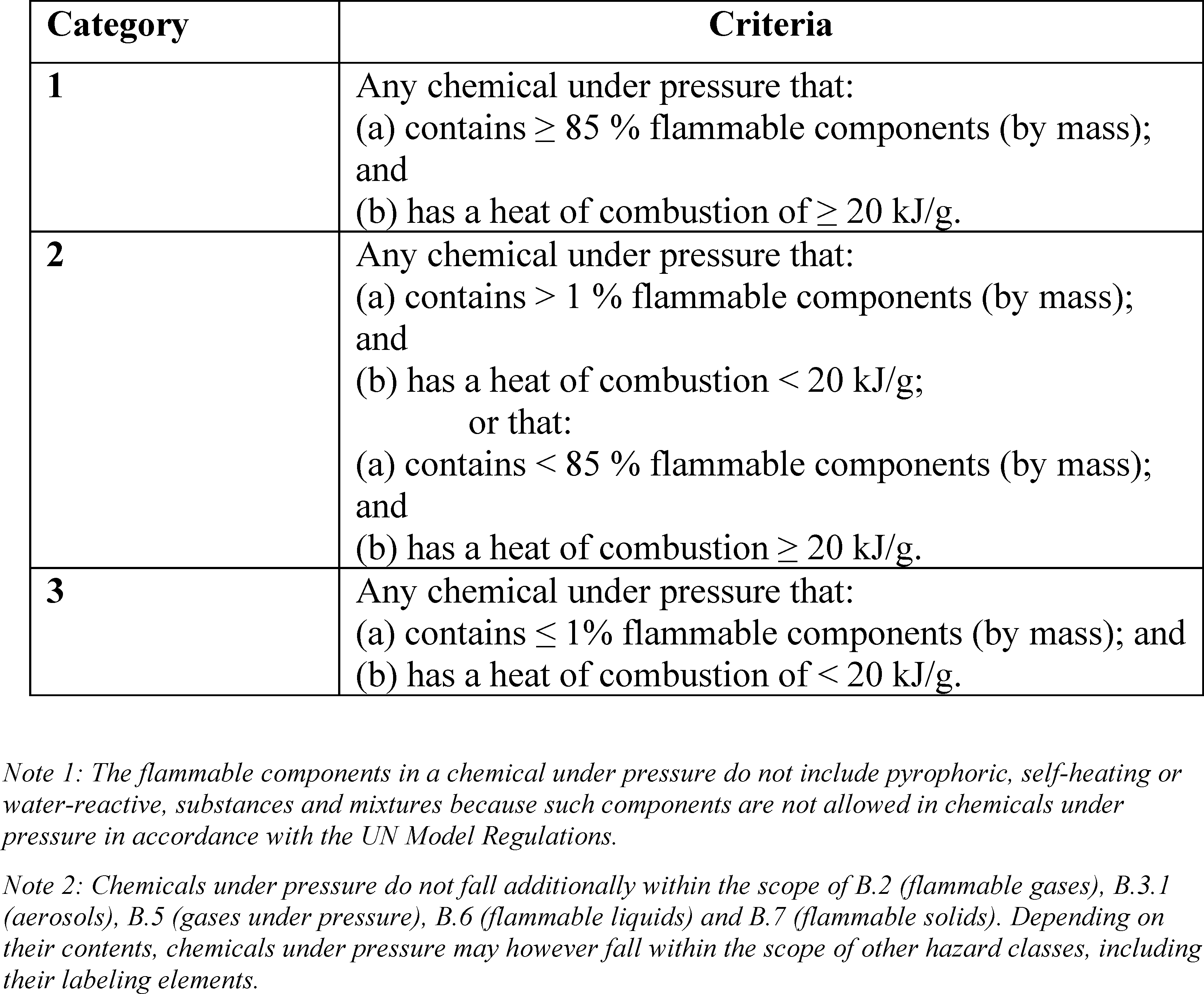Table B.3.2: Criteria for Chemicals Under Pressure