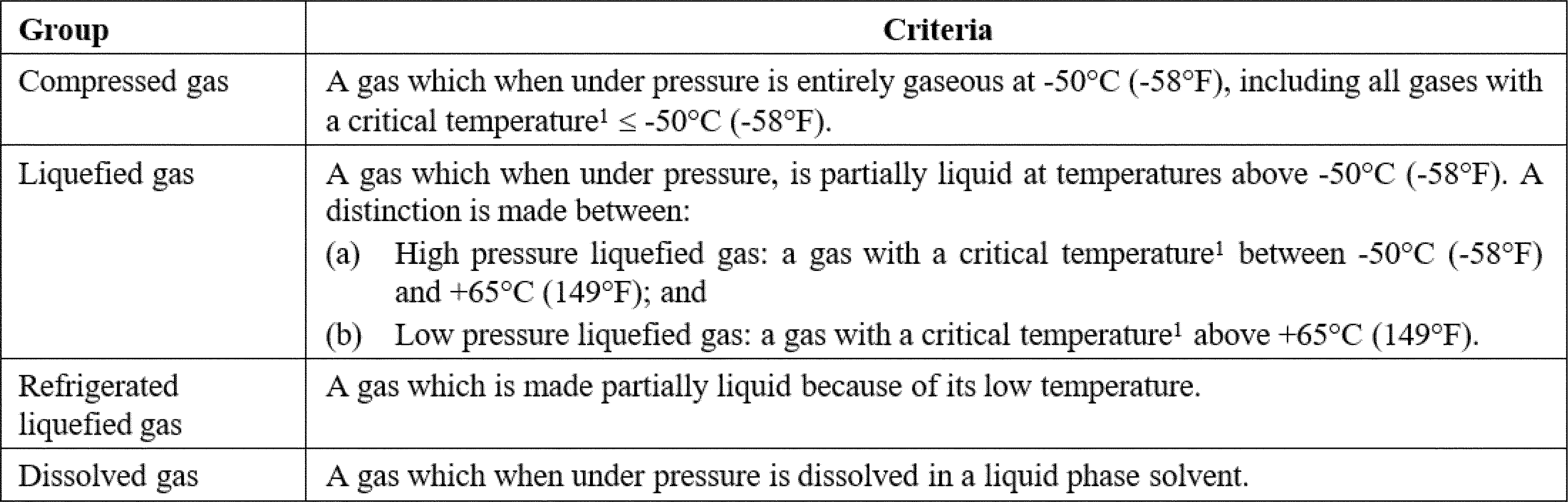 Table B.5.1: Criteria for Gases Under Pressure