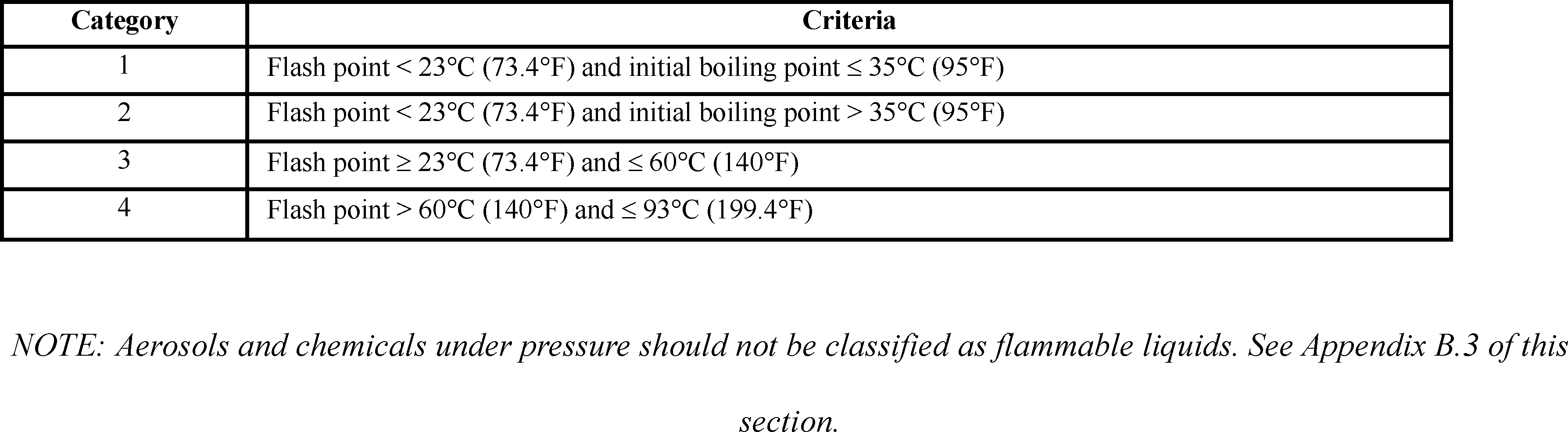 Table B.6.1: Criteria for Flammable Liquids